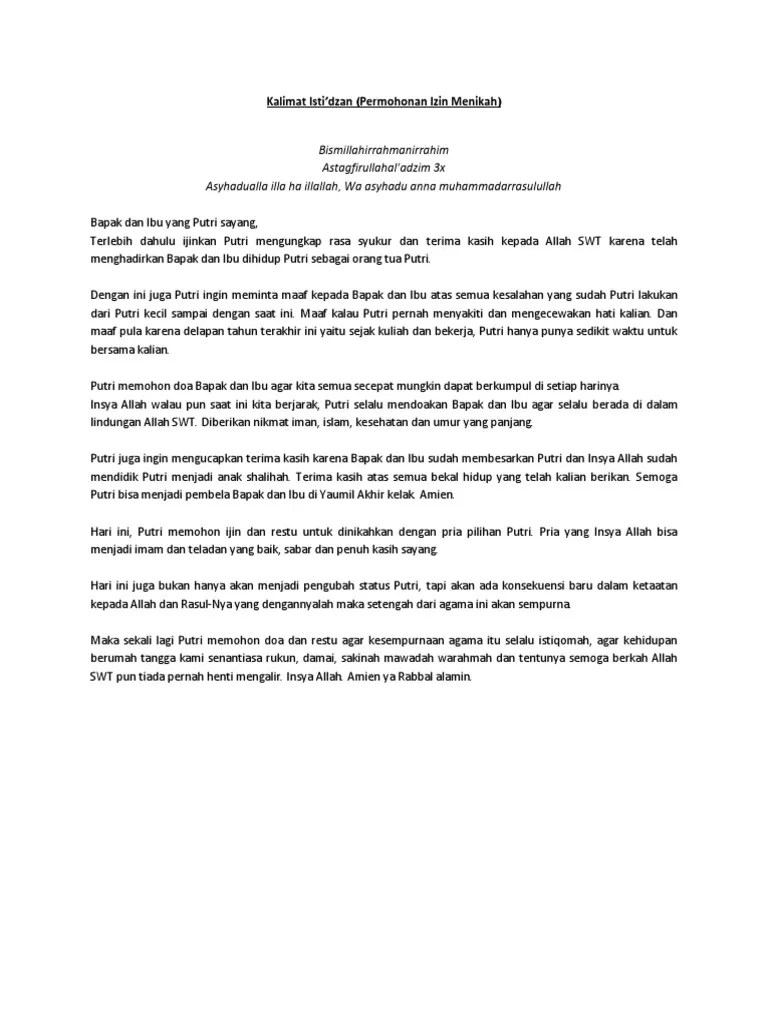 Ungkapan haru nikita willy ketika minta izin untuk nikah pada sang ibunda sambil beruari air mata. Berikut adalah contoh teks izin menikah saat ijab kepada ayah dan ibu bagi anda yang akan melangsungkan pernikahan. Terlebih lagi ketika mereka memiliki anak perempuan, sosoknya kelak akan mendampingi anak gadisnya saat menikah. Pada ayat 4 pasal yang sama, disebutkan juga bahwa perusahaan dapat memberikan izin libur bekerja selama 3 hari kepada pekerja yang hendak . Ia akan menjadi wali nikah .